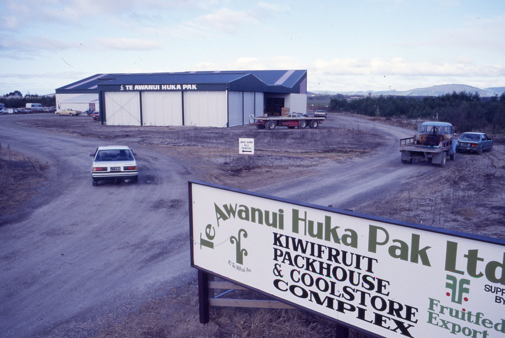 Date1988 to 1989Reference NumberPhoto 20-458DescriptionEntrance to Te Awanui Huka Pak Ltd. Image was not used in the Aku Taumata Korero - Ngā marae me ngā iwi o te moana o Tauranga book published in 1989. FormatPositivePhysical DescriptionPostive film image inside 50x50mm plastic slide film mount framePhotographer/CreatorBurch, Brad, 1948-2010