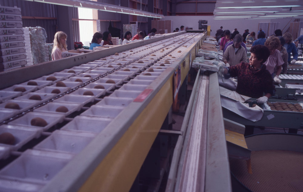 Inside of Te Awanui Huka Pak Ltd. factory (1988 to 1989). Pae Korokī, accessed 03/04/2026, https://paekoroki.tauranga.govt.nz/nodes/view/40614