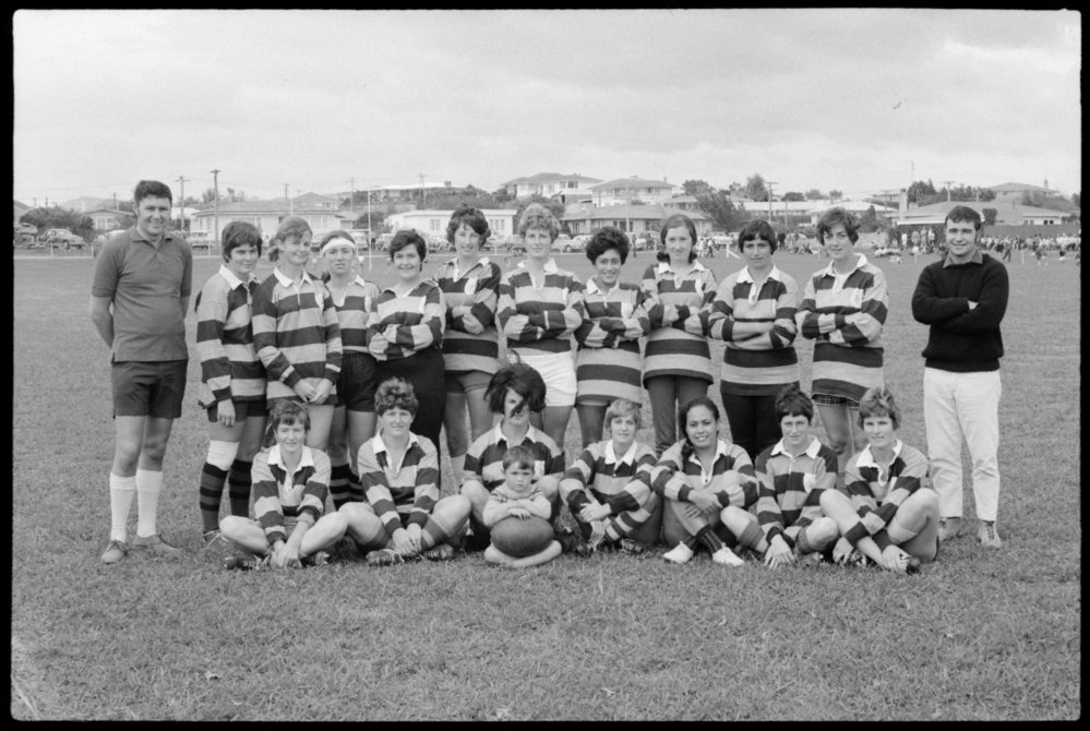 Date30 May 1970Reference NumberPhoto pn-7373DescriptionBarbaric Belles: team photo. Photograph taken for magazine number 95 of the Bay of Plenty Photo News, 30 May 1970, p.61.FormatNegativePhysical Description35mm negative