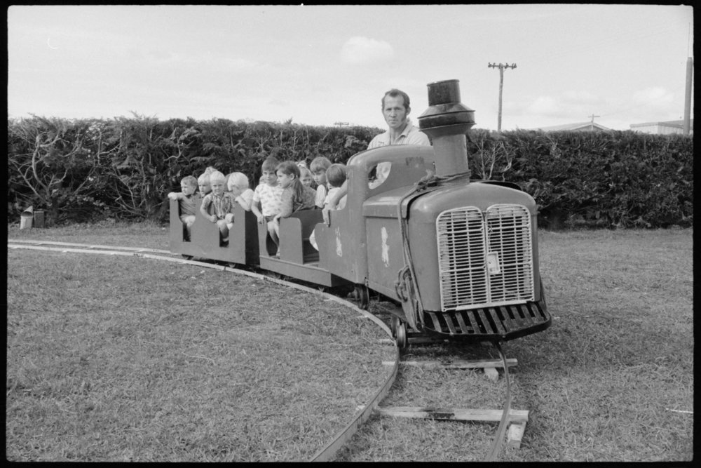 Date30 May 1970Reference NumberPhoto pn-7418DescriptionKindy karnival: train. Photograph taken for magazine number 96 of the Bay of Plenty Photo News, 30 May 1970.