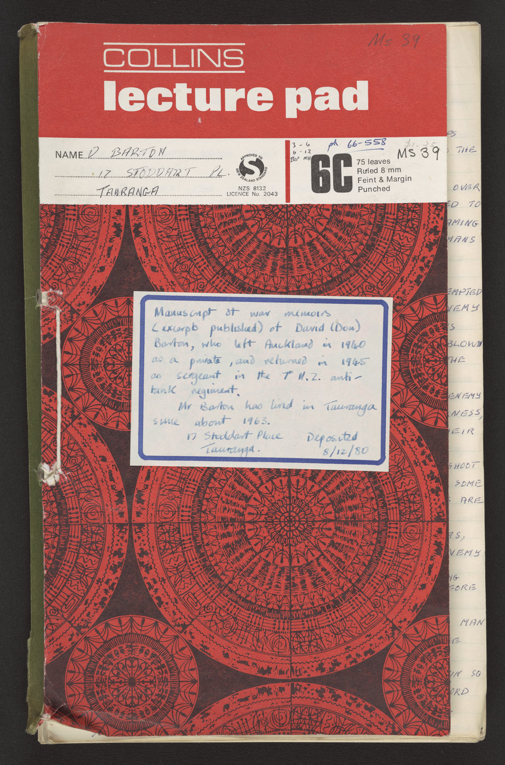 Barton, David Giovanni, 1914-2003, Second World War memoirs of David Barton ([c. 1980]). Pae Korokī, accessed 05/04/2026, https://paekoroki.tauranga.govt.nz/nodes/view/41653