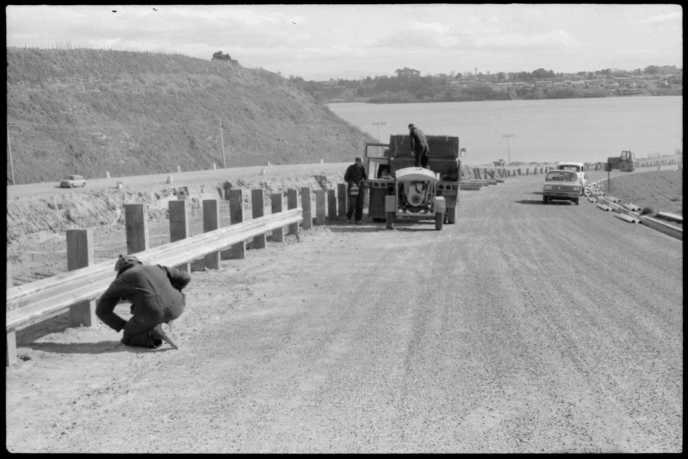 Date22 August 1970Reference NumberPhoto pn-8482DescriptionHairini motorway. Photograph taken for magazine number 99 of the Bay of Plenty Photo News, 22 August 1970.FormatNegative