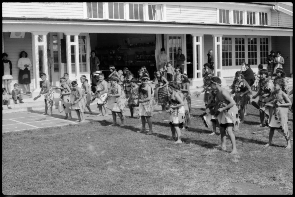 Date22 August 1970Reference NumberPhoto pn-8486DescriptionOtepou School: haka. Photograph taken for magazine number 99 of the Bay of Plenty Photo News, 22 August 1970, p.7.FormatNegative