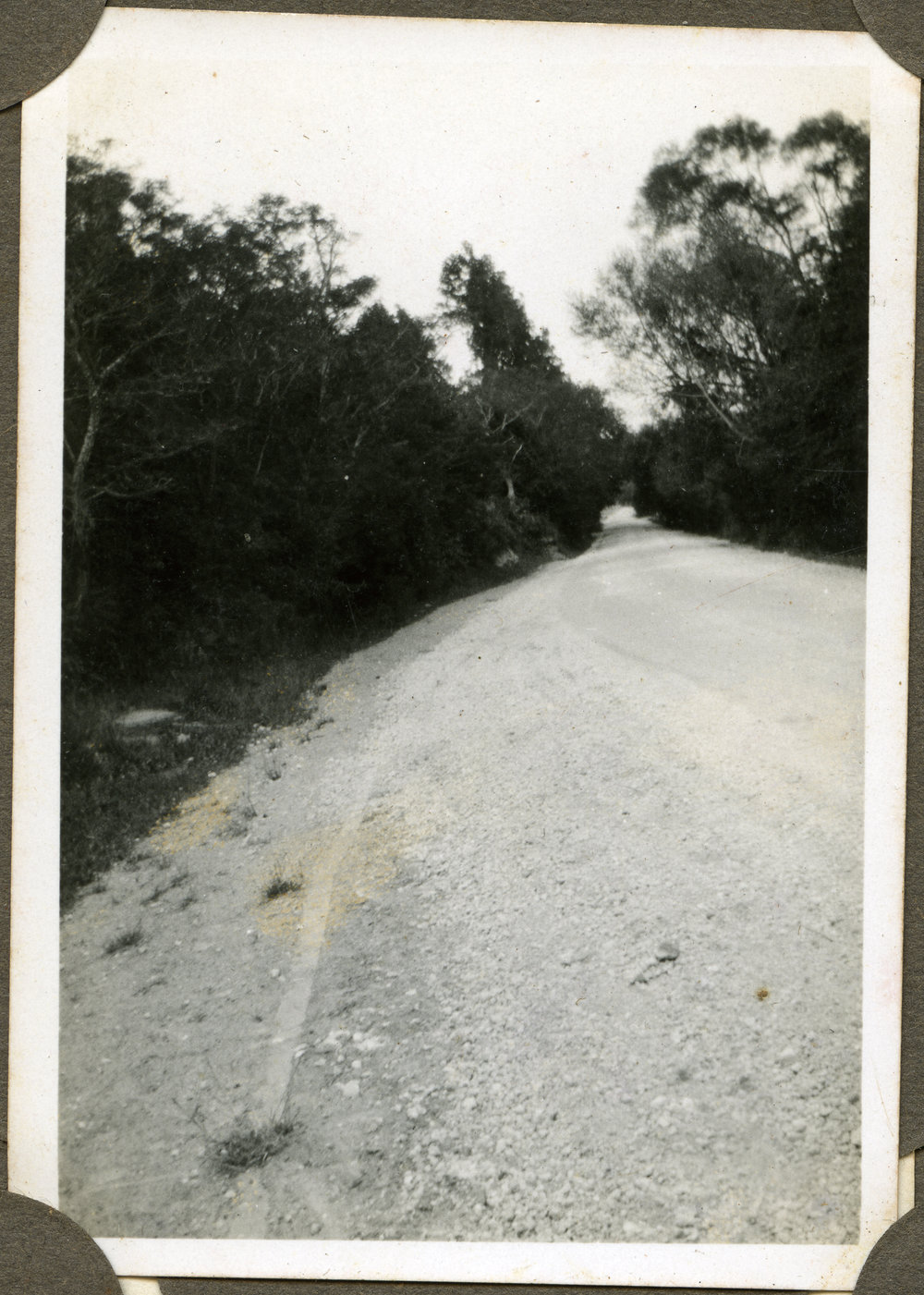 Date1929-1930Reference NumberPhoto 11-084DescriptionRotorua-Paengaroa road, about six miles out of Rotorua, Dec 1929 or Jan 1930. From an album of photos taken by George James Strickett, engineer, of Ōtāhuhu, who was visiting relations in Tauranga over the summer of 1929-1930. He rode his 1927 AJS motorbike on fascined roads. FormatPrintPhysical Descriptionblack and white printPhotographer/CreatorGeorge James Strickett