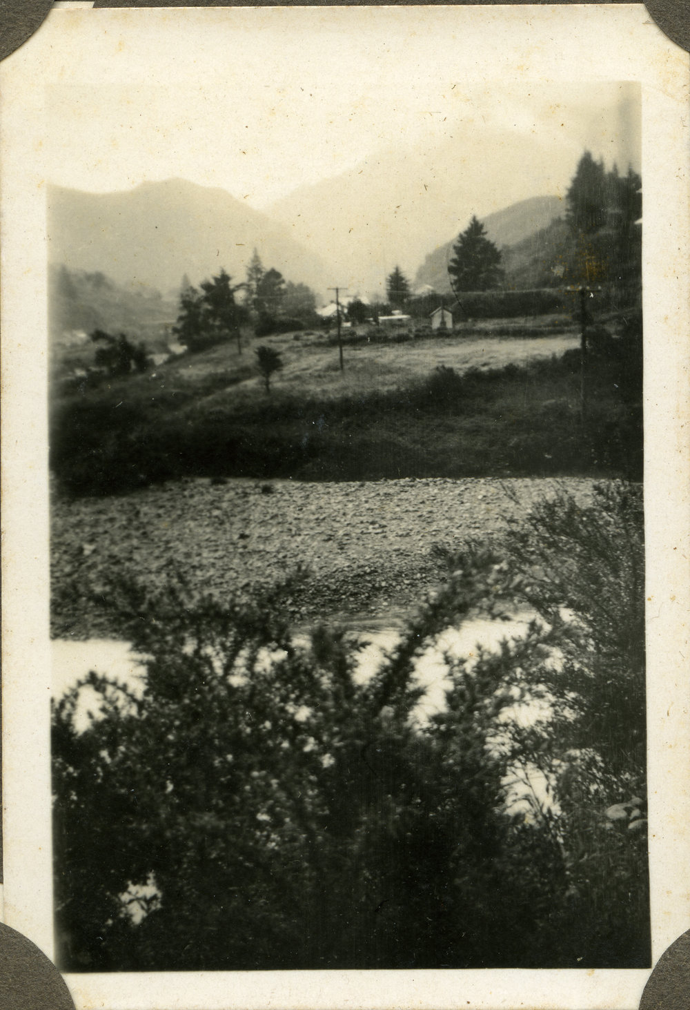 Date1929-1930Reference NumberPhoto 11-094DescriptionKarangahake Gorge, near Waihī, Dec 1929-Jan 1930. From an album of photos taken by George James Strickett, engineer, of Ōtahuhu, who was visiting relations in Tauranga over the summer of 1929-1930. He rode his 1927 AJS motorbike on fascined roads.FormatPrintPhysical Descriptionblack and white printPhotographer/CreatorGeorge James Strickett