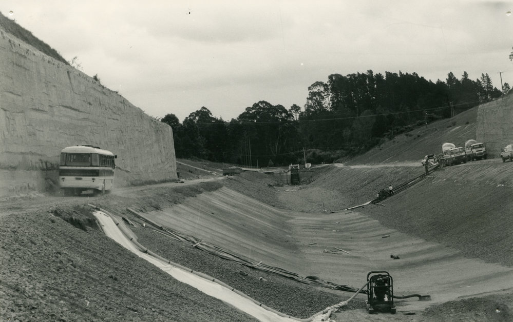 Date1981Reference NumberPhoto 09-109DescriptionRuahihi Power Station Canal under construction, Tauranga, c 1981. FormatPrint