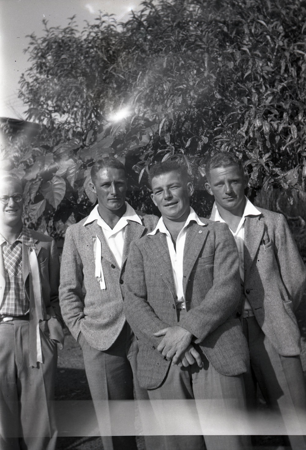 Date1940 to 1949Reference NumberPhoto 09-153DescriptionGroup of young men, 1940s. Surfers?FormatPrint