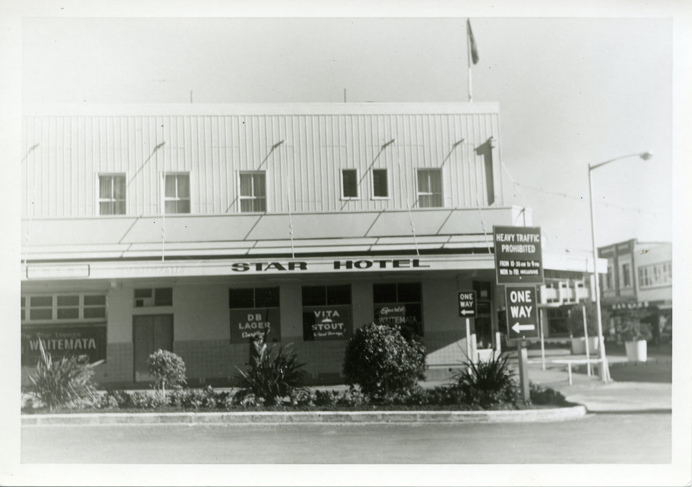 Date1974Reference NumberPhoto 10-019DescriptionStar Hotel, corner Spring Street and Devonport Road, Tauranga, 1974. FormatPrintPhysical Descriptionblack and white print