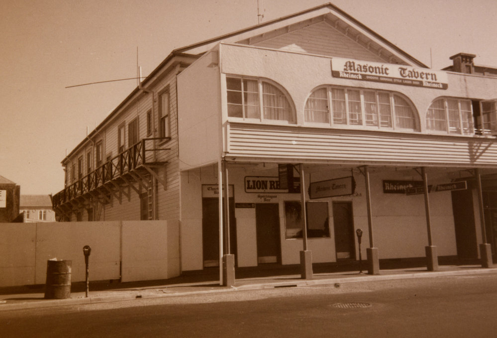 Datec. 1990Reference NumberPhoto 10-137DescriptionMasonic Tavern (previously Masonic Hotel) on The Strand, Tauranga c 1990. Taken prior to its demolition in July 1993. Area behind later converted to Coronation Park with carparking area. FormatPrint