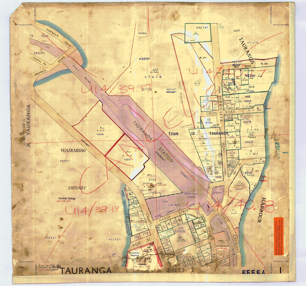 Land Information New Zealand (LINZ), Tile 1: Survey Office map 55554. Pae Korokī, accessed 27/03/2026, https://paekoroki.tauranga.govt.nz/nodes/view/43691
