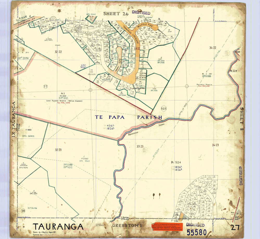 Land Information New Zealand (LINZ), Tile 27: Survey Office map 55580. Pae Korokī, accessed 27/03/2026, https://paekoroki.tauranga.govt.nz/nodes/view/43717