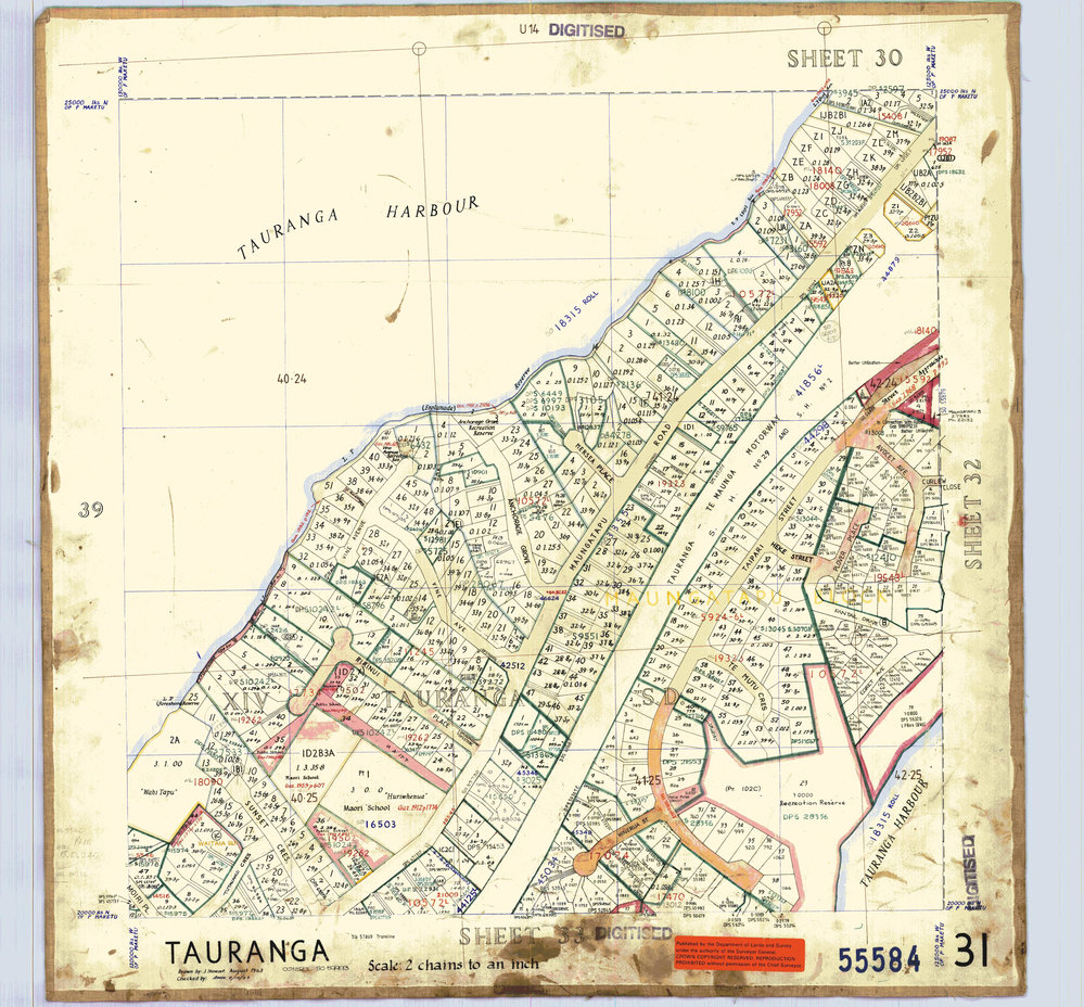 Land Information New Zealand (LINZ), Tile 31: Survey Office map 55584. Pae Korokī, accessed 27/03/2026, https://paekoroki.tauranga.govt.nz/nodes/view/43721