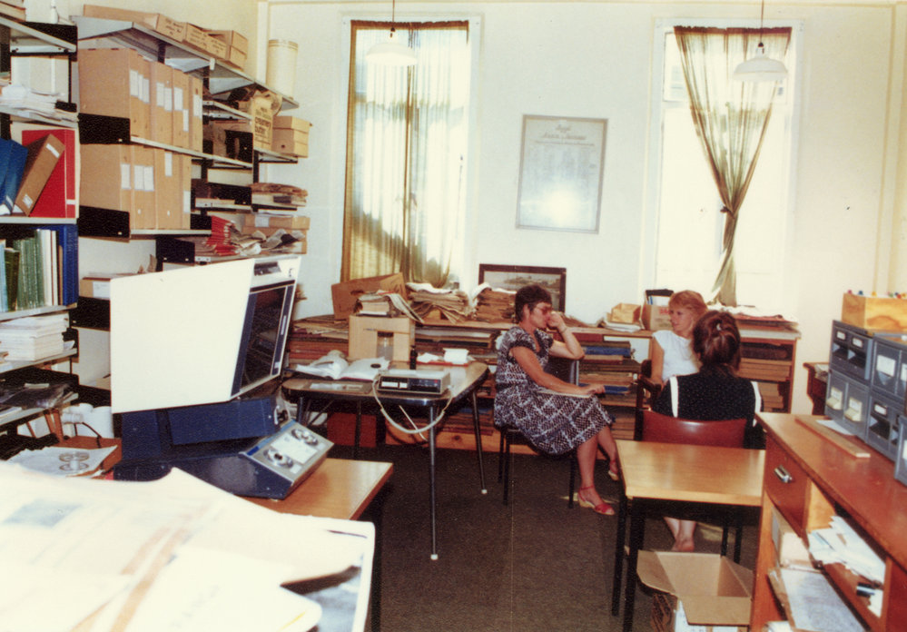 Datec. 1984 or 1985Reference NumberPhoto 05-550DescriptionTauranga Town Hall, Sladden Library archivist's work room, ground floor north east corner, c. 1984 or 1985. From Tauranga City Council's site investigation report, File No 44/16/2, Box 55a, Durham Street, now in V/F Historic Places: Town HallFormatPrintPhysical Descriptioncoloured printPhotographer/CreatorTulloch, Bob