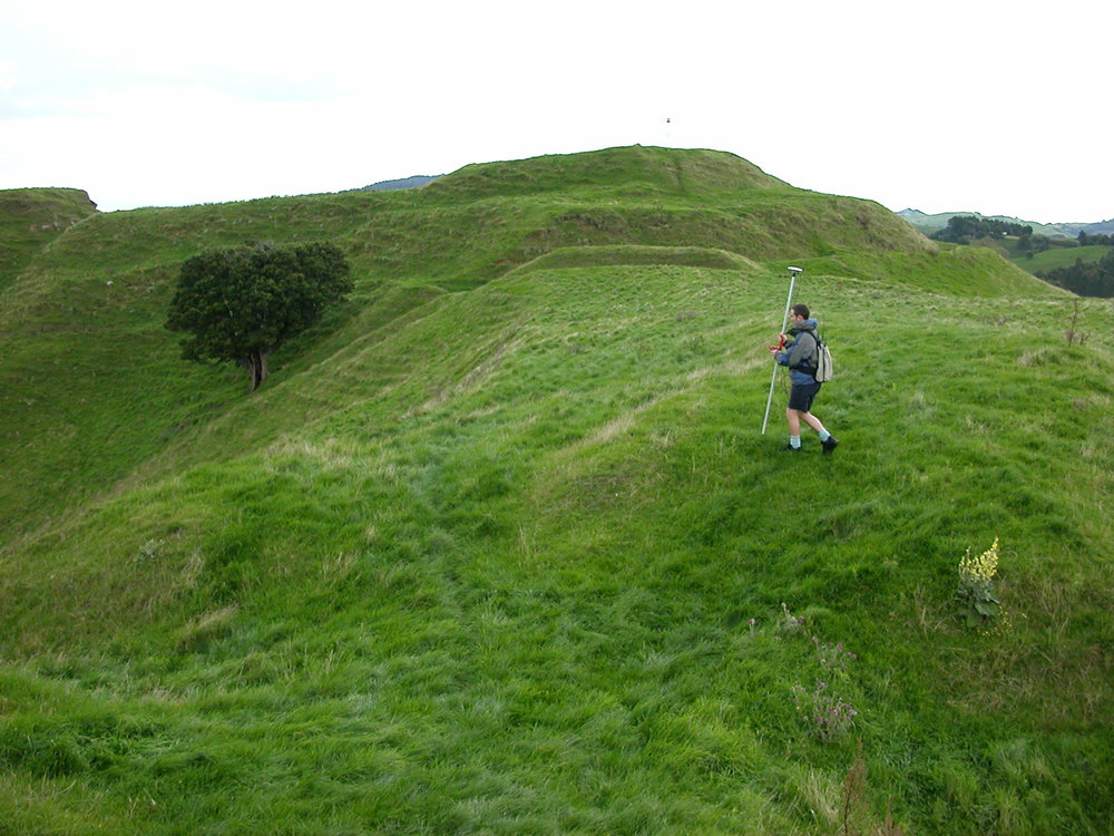Datec. 2003Reference NumberPhoto 07-303DescriptionPāpāmoa Hills pā with trig on skyline and archaeologist, c. 2000s. Des Kahotea photo.FormatPrintPhysical DescriptionJPEGPhotographer/CreatorKahotea, Des