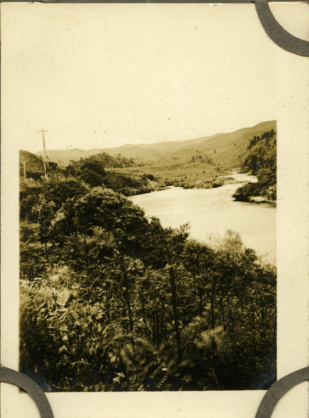 DateDecember 1929 or January 1930Reference NumberPhoto 11-069DescriptionWairoa River, looking upstream towards Tauranga, December 1929 or January 1930. From an album of photos taken by George James Strickett, engineer, of Ōtāhuhu, who was visiting relations in Tauranga over the summer of 1929-1930. He rode his 1927 AJS motorbike on fascined roads. FormatPrintPhysical Descriptionblack and white printPhotographer/CreatorStrickett, George James