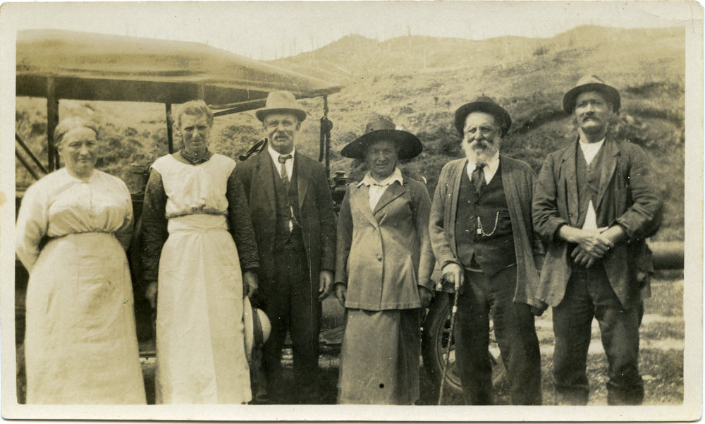 Datec. 1910s to 1920sReference NumberPhoto 12-019DescriptionUnnamed, Emma Simpson, Henry Bickers, Sarah Bickers, Grandad Cooper, Bob Simpson, c. 1910s-20s. Photo probably taken at Komata near Paeroa.FormatPrintPhysical Descriptionblack and white print