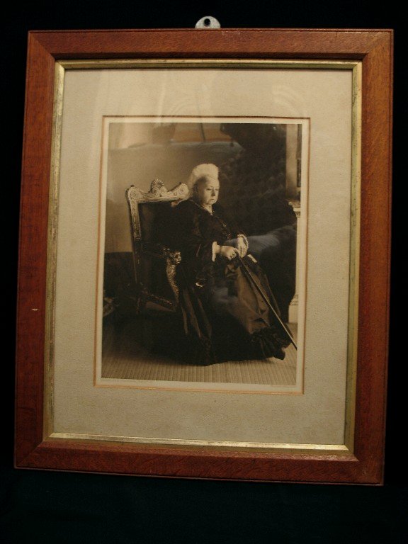 Reference Number1972.0023Description'Rembrandt Photogravure' of Queen Victoria glazed and in a wooden frame with a gilt slip frame. The black and white photograph shows Queen Victoria seated in a carved wooden chair as an elderly woman. Underneath the photograph on the viewer's left is written, "Copyright Photo by Russell and Sons Baker St. W." The back of the picture has an A.N. Brown Collection sticker on it, and the picture framer's sticker; John Leech of Auckland.Physical DescriptionArt. Picture