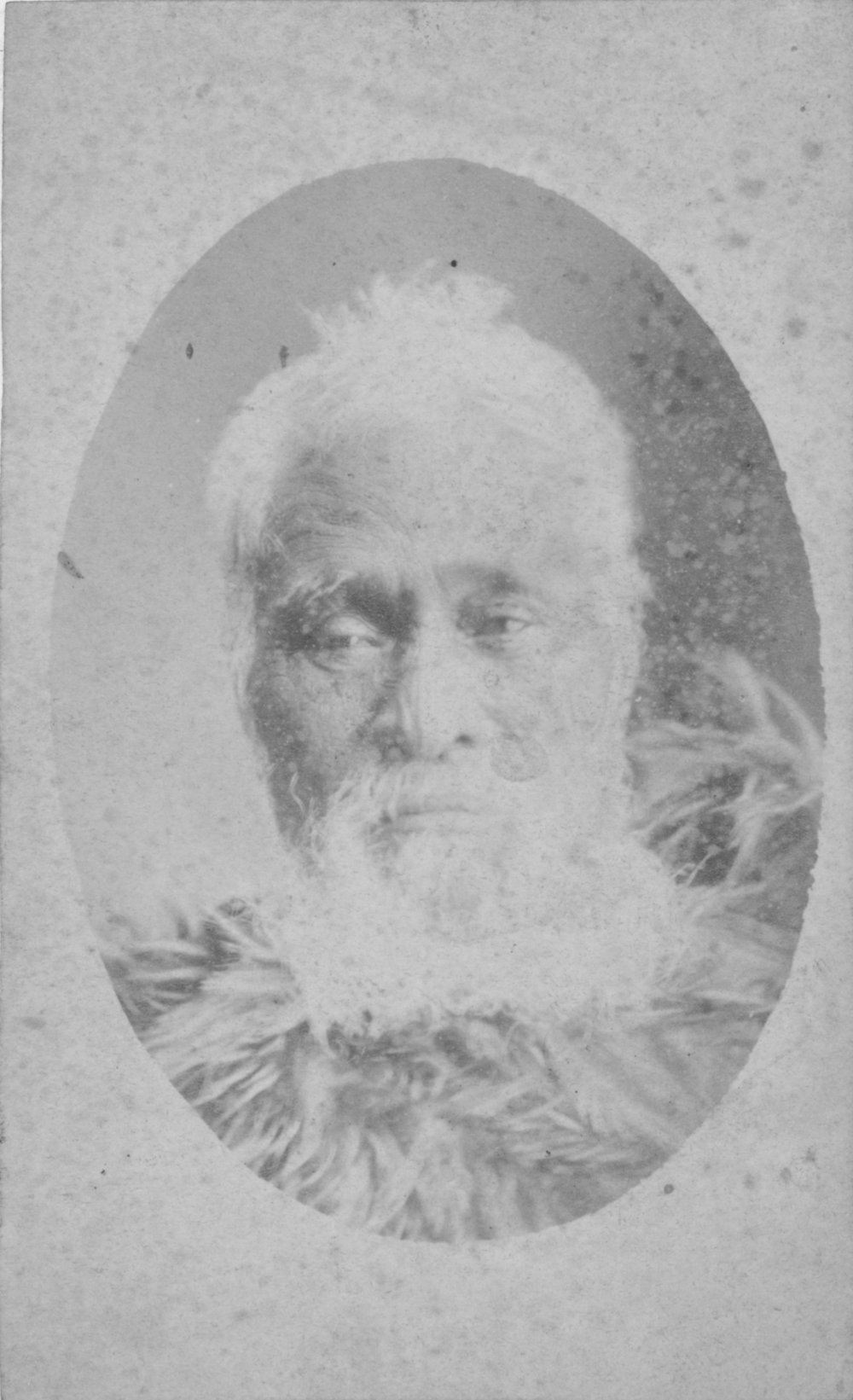 Date1879Reference Number1972.0283DescriptionStudio portrait photograph of an elderly maori man, head only, dressed what could be a dog hair cloak. Printed on the white border, on the lower edge of the image is: "ROYAL PORTRAIT STUDIO - WELLINGTON". On the reverse of the photograph is written in black ink: "Ko Hori Tupaea - 29th July 1879 Hastings Napier N.Z.". Written in pencil below this is: "Lived 2 years in Wellington as guest of Sir Geo Grey - died 1880". There is an A.N. BROWN COLLECTION stamp on the reverse. Tauranga Public Library records this photo as: Hori Tupaea 1879.Physical DescriptionDocumentary Artifact. Carte-de-visite. Printsize: 105 x 64mmPhotographer/CreatorRoyal Portrait Studio