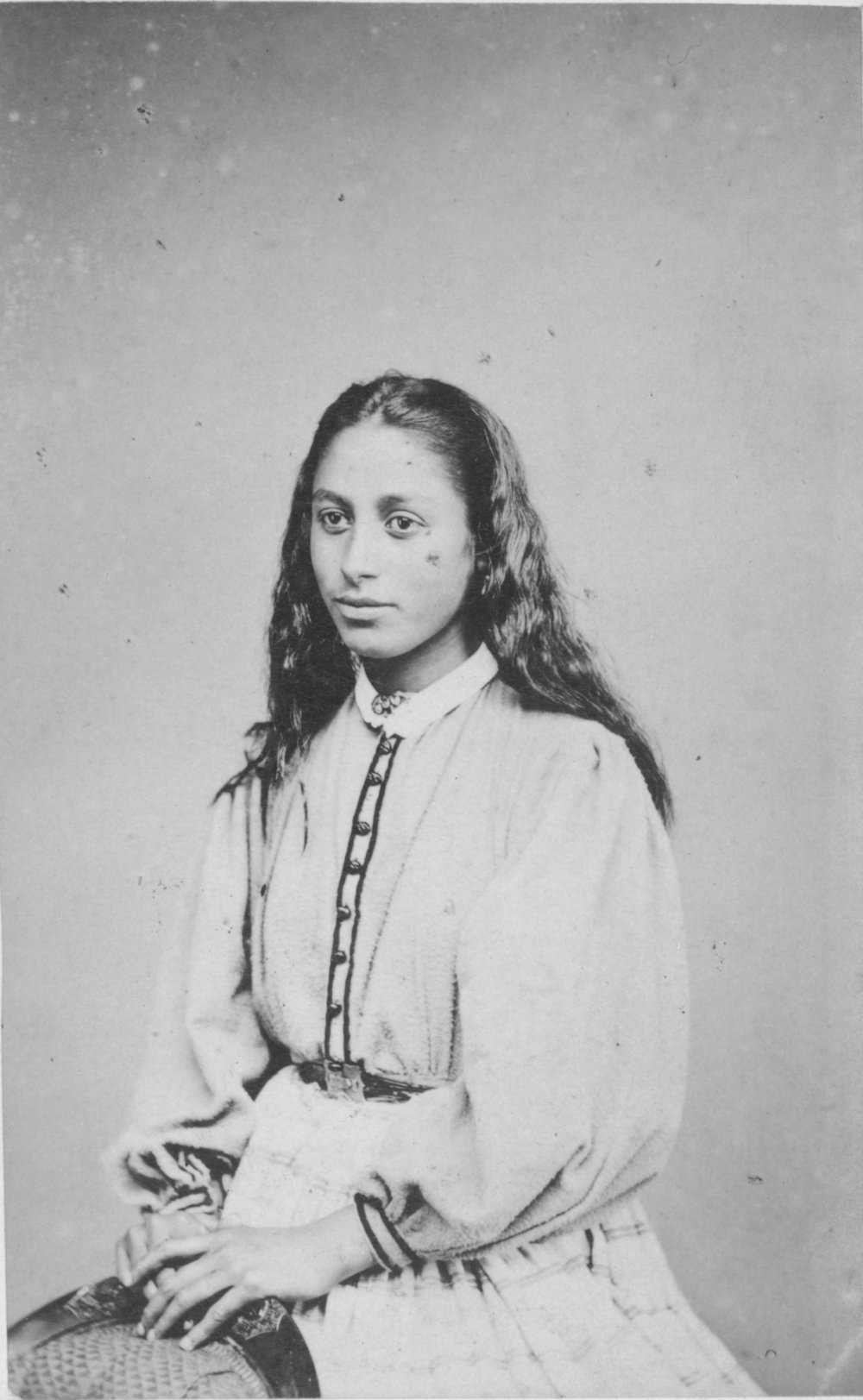Maori girl unidentified (Caption: Maori girl holding hat C.1860's)