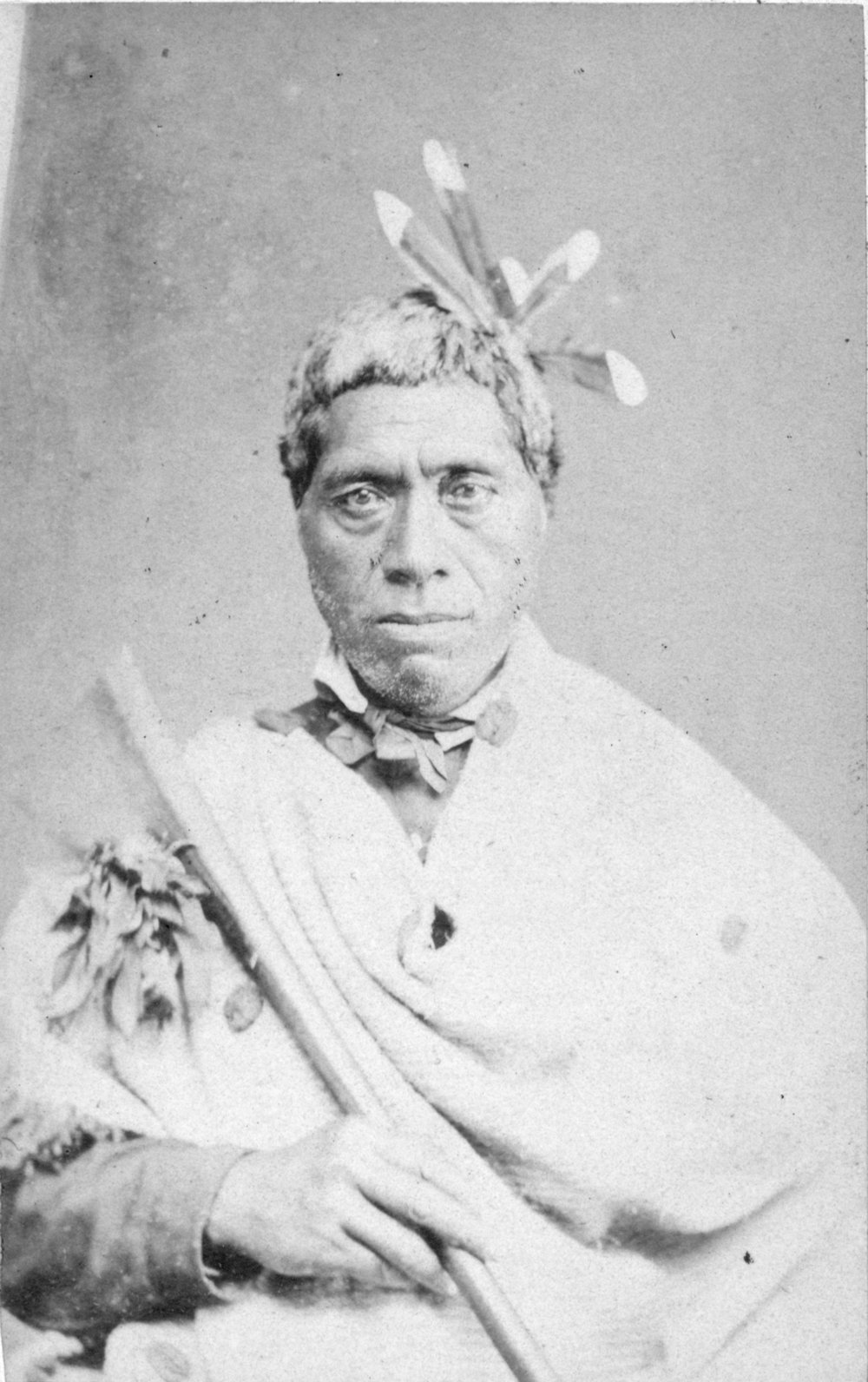 Reference Number1972.0296DescriptionA studio portrait photograph of a Maori man, dressed in European clothing, with a cloak draped over his shoulders, and feathers in his hair, holding a tewhatewha in his right hand. A photocopy of a page out of an album of carte-de-visite, donated by Mike Dottridge, identifies this man as Parrera. On the reverse of the photograph is printed: "Photographed by - H. WEBSTER - AUCKLAND". There is an A.N. BROWN COLLECTION stamp on the reverse.Physical DescriptionDocumentary Artifact. Carte-de-visite. Dimensions are taken to the outside of the card.. Printsize: 105 x 62mmPhotographer/CreatorWEBSTER, H.
