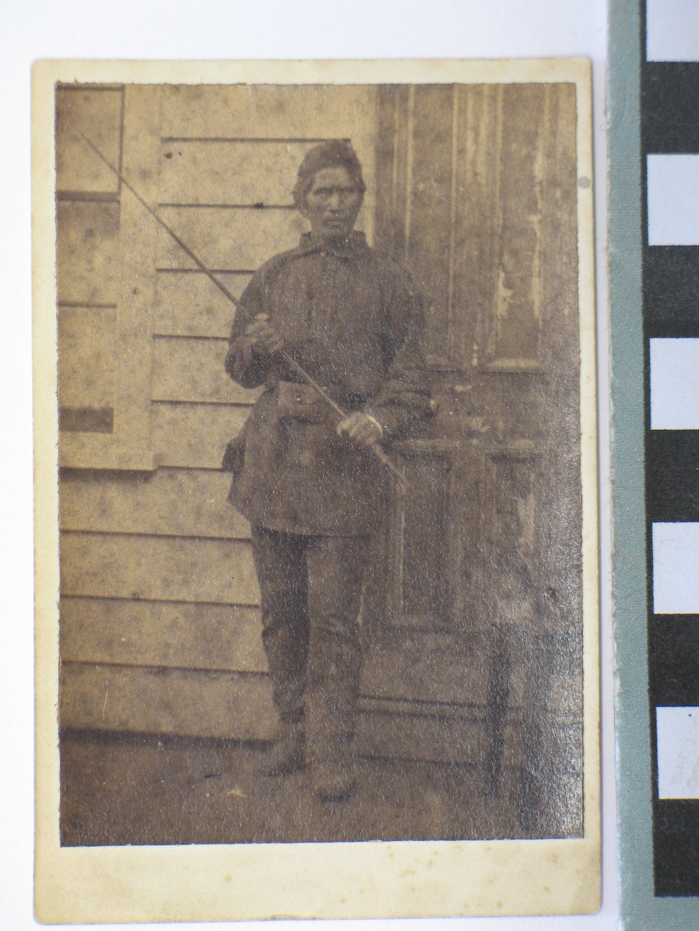 Wiremu Tamihana, standing in front of Elms Library. (Caption: Carte-de-visite Wiremu Tamihana)
