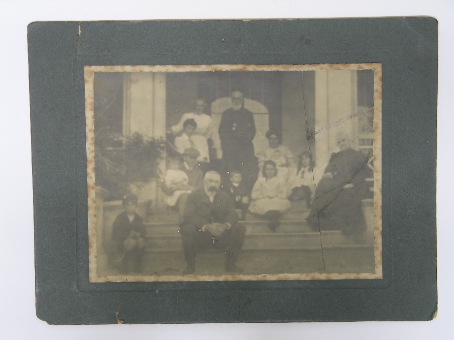 Reference Number2008.043DescriptionA black and white photograph mounted on a dark grey card, of Canon and Mrs. Jordan seated on the steps of a house with a group of adults and children. Written in pencil on the back of the card is: "W.H. Smith - 119 Grafton Road - Auckland", and glued to the back of the card is a piece of lined paper with: "Canon & Mrs. Jordan", written on it.Physical DescriptionDocumentary Artifact. Print, Photographic