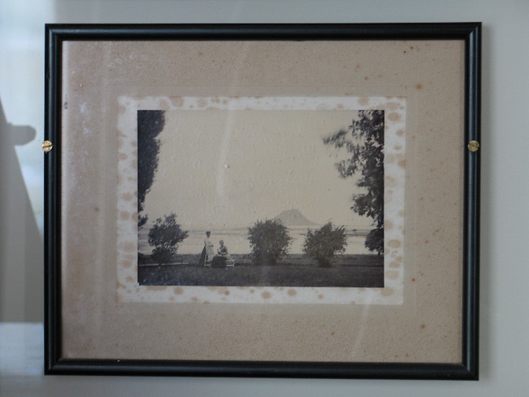 Reference Number2006.0224DescriptionPhotograph of 2 women and a dog on the front lawn of the Elms with Mount Maunganui in the background, glazed and in a plain black frame. The picture is on display, permanently attached to the wall and I was unable to examine closely.. Noted with file: These two photographs appear to have been taken on the same day.Physical DescriptionArt. PicturePhotographer/CreatorUnknown