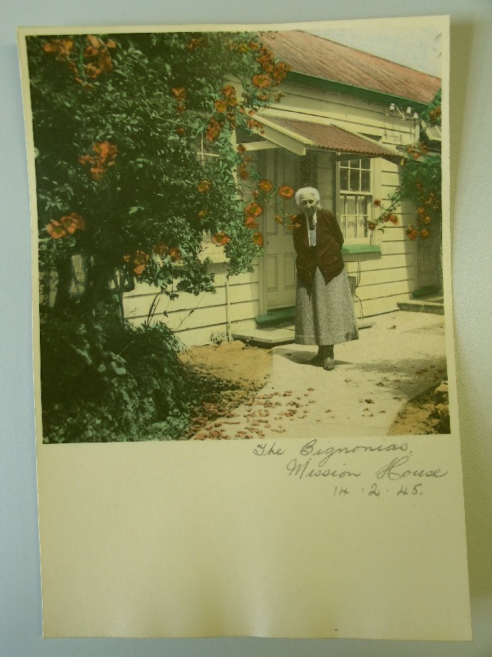 The Bignonias Mission House 14.2.1945. (Caption: Photograph of Alice Maxwell) (1945). Pae Korokī, accessed 24/03/2026, https://paekoroki.tauranga.govt.nz/nodes/view/45562
