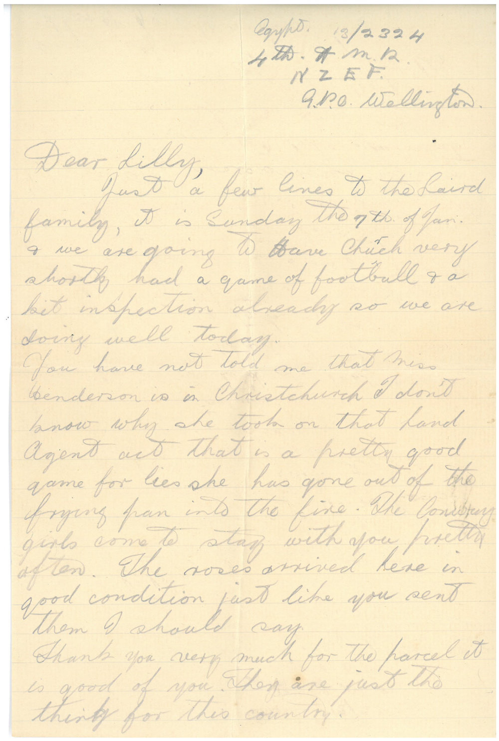 Goodacre, Eric Lucas, 1895-1968, Letter from Eric Lucas Goodacre to Lilly Laird (January 7, 1917). Pae Korokī, accessed 05/04/2026, https://paekoroki.tauranga.govt.nz/nodes/view/45769