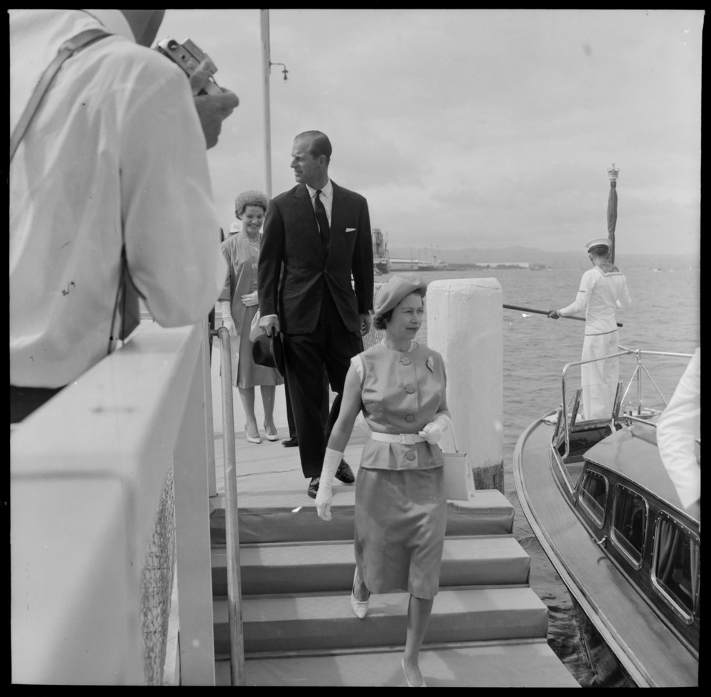 Queen & Duke boarding the Royal Bridge [Barge?], Pub. Special Issue. 9.2.63 (1963). Pae Korokī, accessed 16/04/2026, https://paekoroki.tauranga.govt.nz/nodes/view/46123