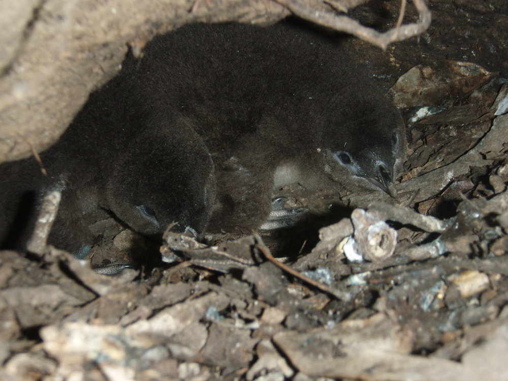 Date2011Reference NumberPhoto 21-287Description2 baby penguins beneath rocks at Motuotau (Rabbit island).FormatDigitalPhotographer/CreatorCuming, Paul