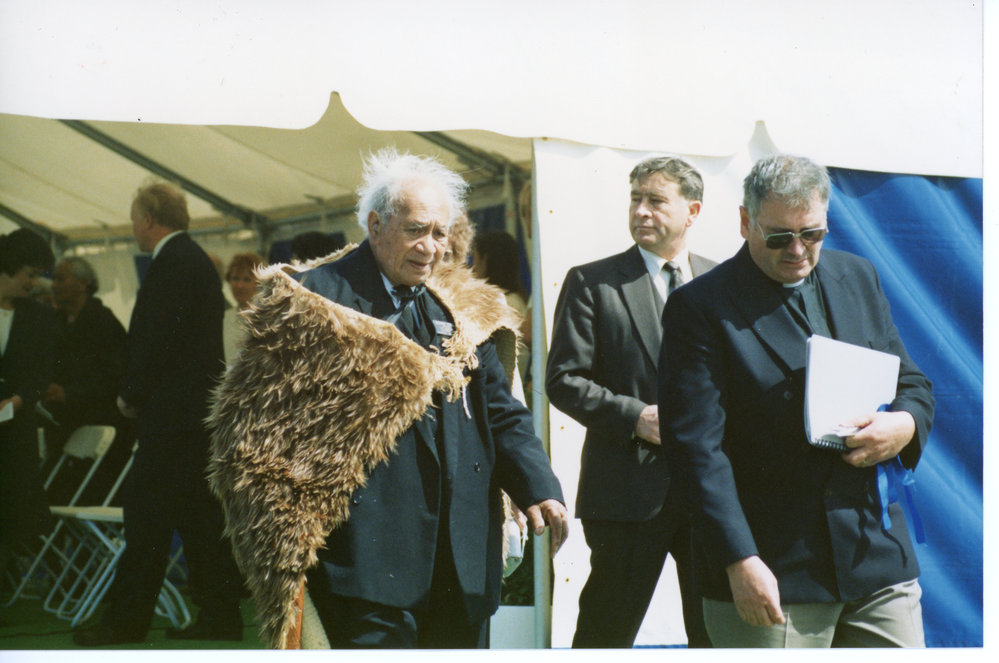 Date1992Reference NumberPhoto 21-314DescriptionHenare Te Koari wearing a Kahukiwi at the opening of the Waikareao Expressway.FormatPrint