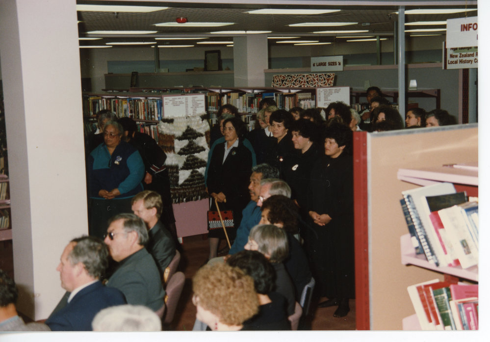 The masses gathered at the Tauranga Library tukutuku panels unveiling as part of Women's suffrage (1993). Pae Korokī, accessed 24/03/2026, https://paekoroki.tauranga.govt.nz/nodes/view/46932