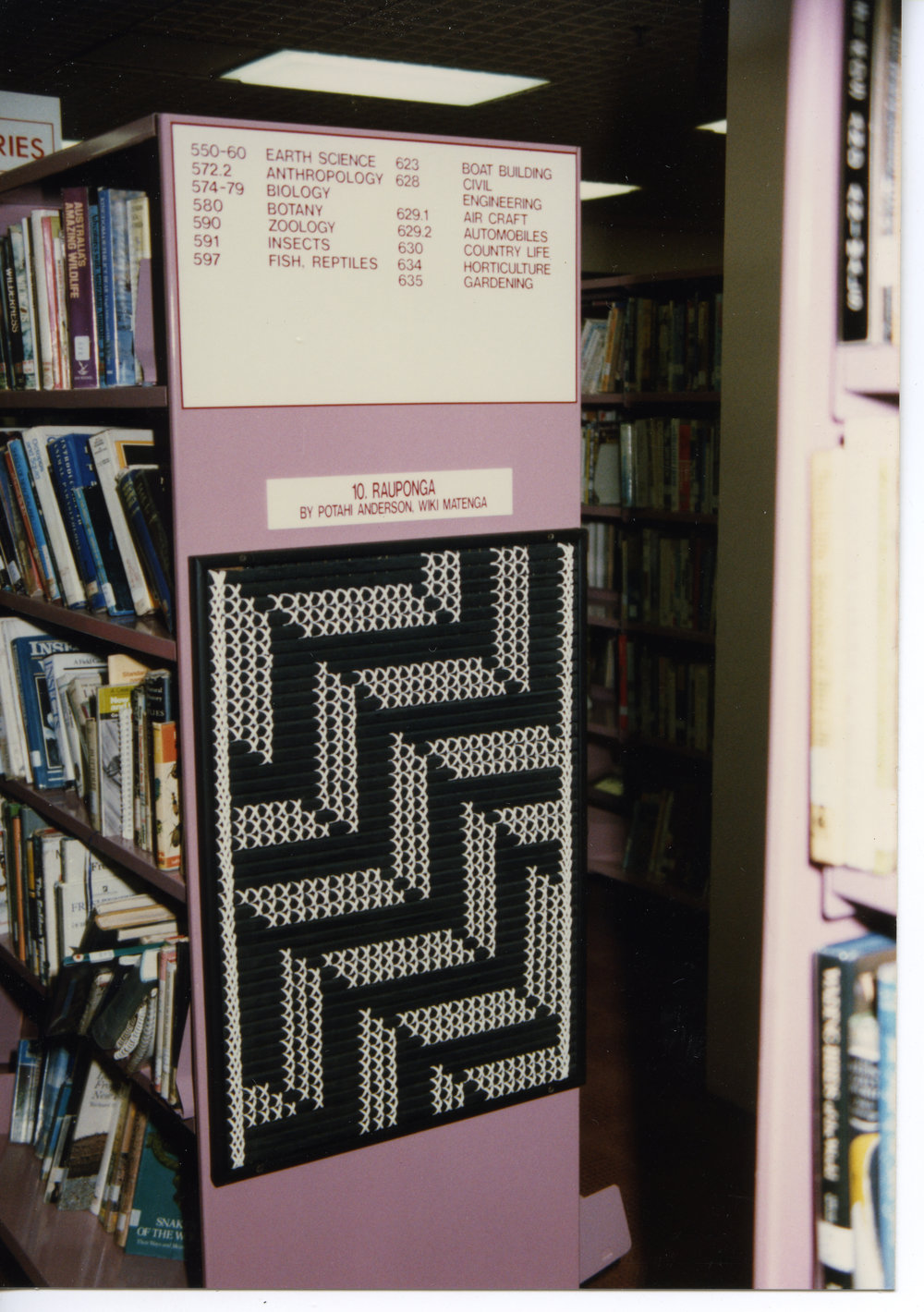 Reference NumberPhoto 21-372DescriptionRauponga - Tukutuku panel at the Tauranga Library tukutuku panels unveiling as part of Women's suffrage.FormatPrint