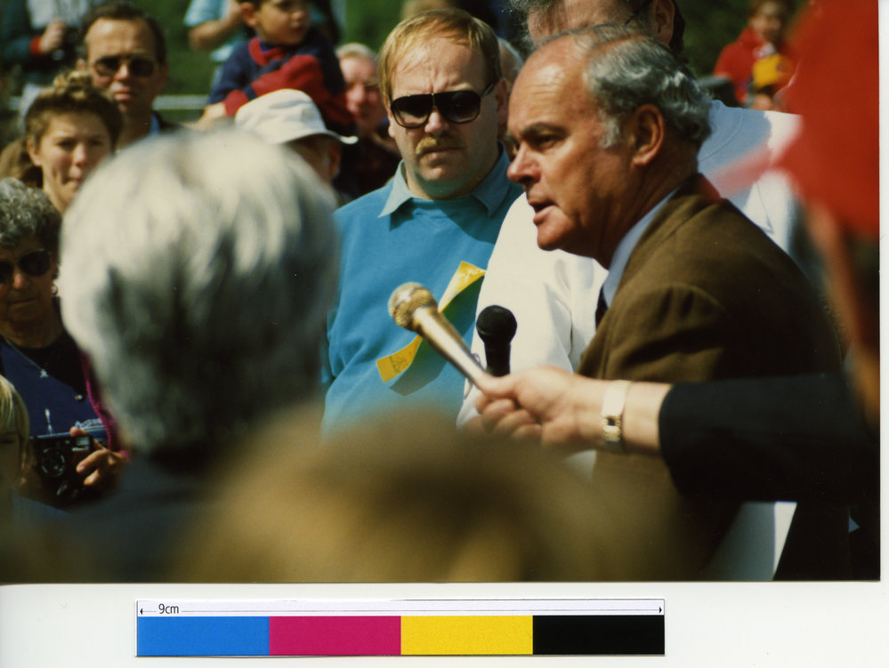 Date1993Reference NumberPhoto 21-456DescriptionKeith Clarke at the opening of the Waikareao Expressway.FormatPrint