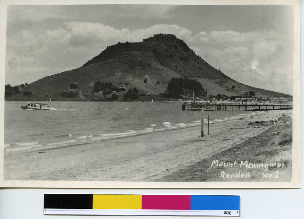 Reference NumberPhoto 21-499DescriptionMauao and Waikorire (Pilot Bay).FormatPrintPhotographer/CreatorRendell, Alfred Hugh, 1917-2019