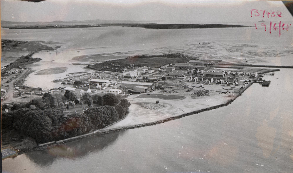 Date19 June 1968Reference NumberPhoto 04-632DescriptionAerial view of Sulphur Point 1968.FormatPrintPhysical Descriptionblack and white printPhotographer/CreatorBay of Plenty Times