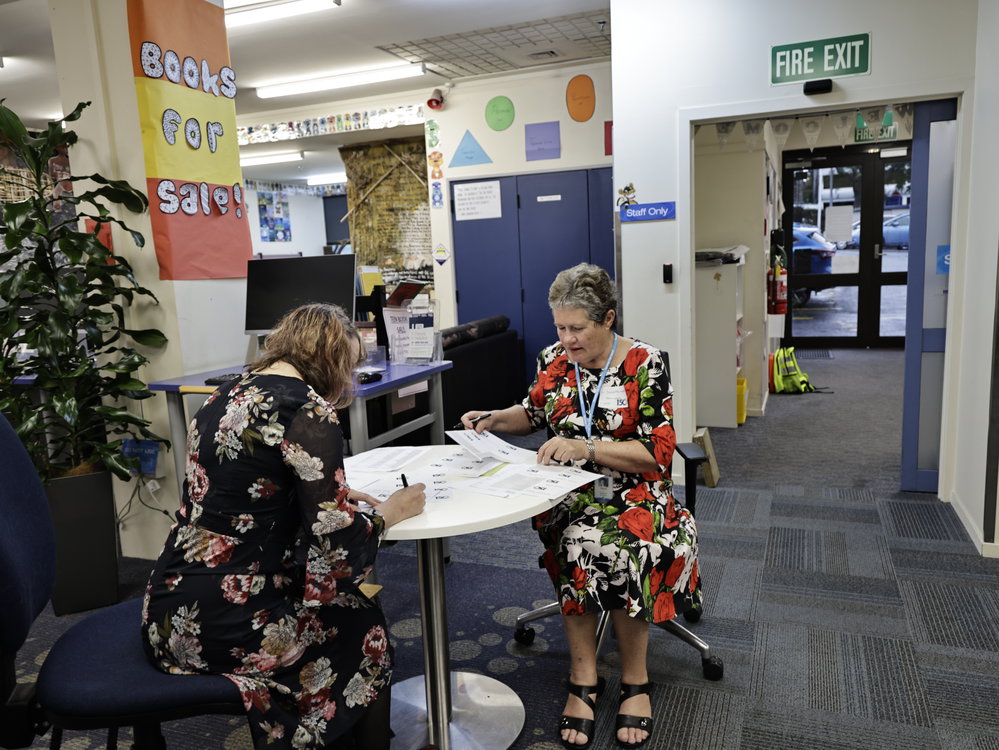 L-R: Michelle Anderson & Donna Mainwaring coordinating attendees (10 April 2021). Pae Korokī, accessed 26/03/2026, https://paekoroki.tauranga.govt.nz/nodes/view/48880