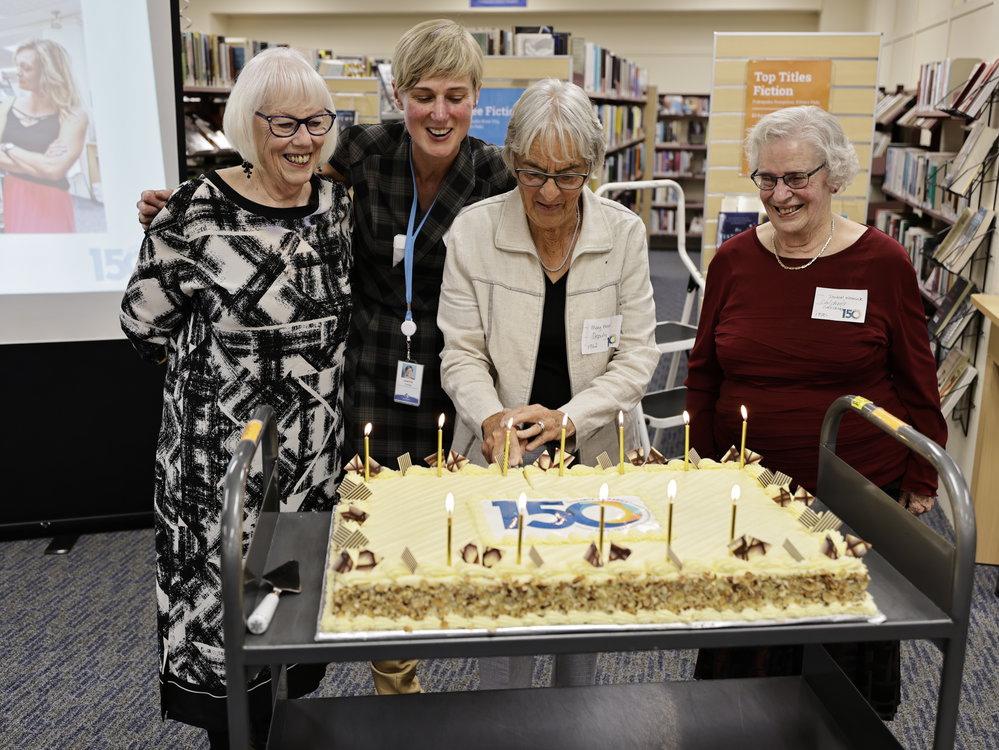 Cutting the cake L-R: Diane Taggart, Joanna Thomas, Mary Foster & Isobel Weenink (10 April 2021). Pae Korokī, accessed 26/03/2026, https://paekoroki.tauranga.govt.nz/nodes/view/48986