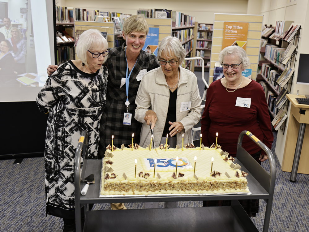 Cutting the cake L-R: Diane Taggart, Joanna Thomas, Mary Foster & Isobel Weenink (10 April 2021). Pae Korokī, accessed 26/03/2026, https://paekoroki.tauranga.govt.nz/nodes/view/48988