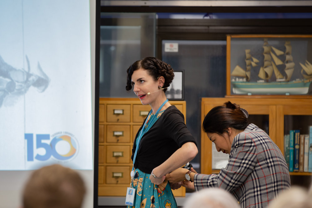 Reference NumberPhoto 21-1177DescriptionTaken during 2021 by photographer Penelope Coleman, for the library's celebration of 150 years of libraries in Tauranga, when archivist Abby Wharne gave a talk. 2:30 PM (Canon EOS 6D). FormatDigitalPhotographer/CreatorPenelope Coleman