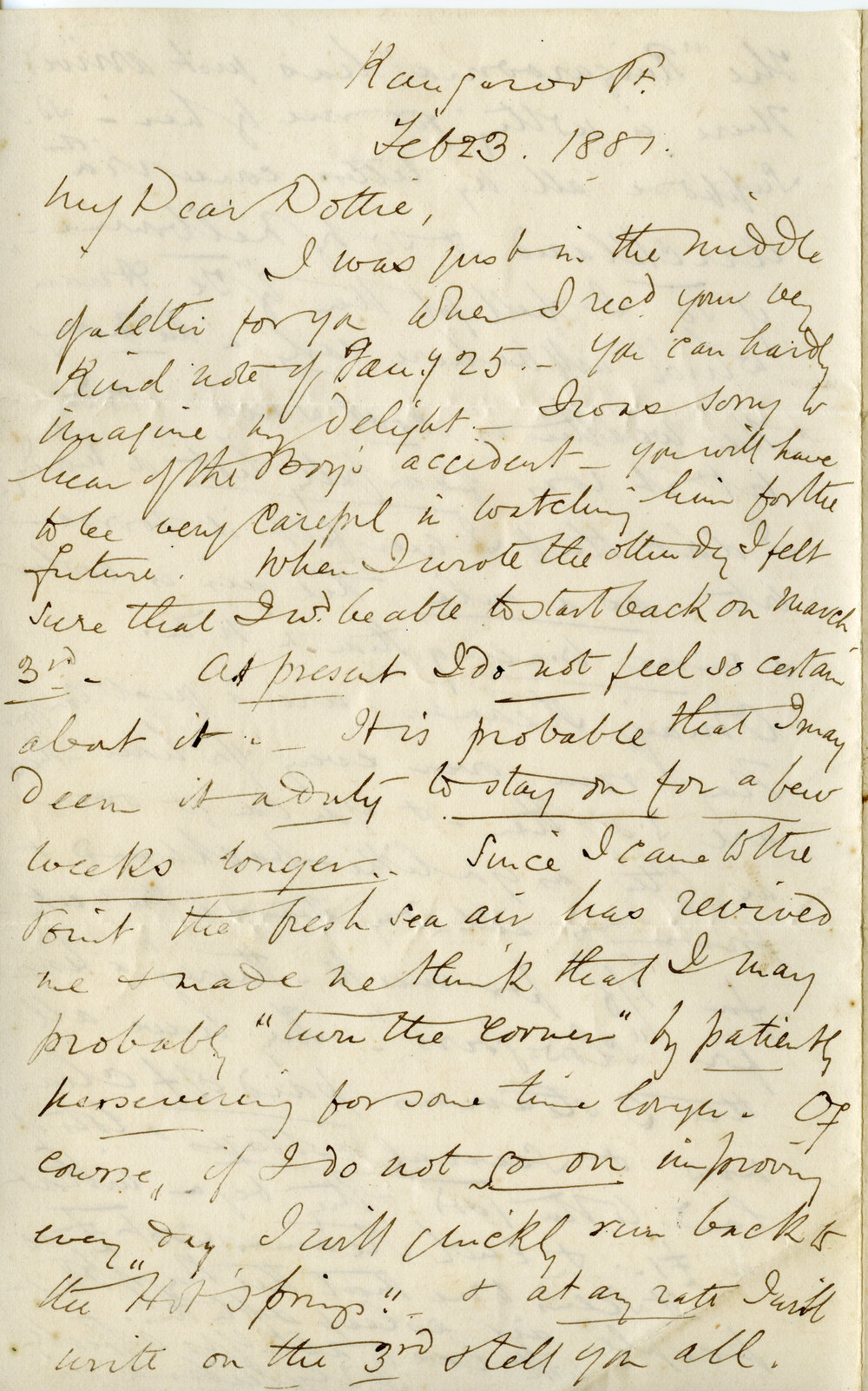 Gellibrand, Joseph Tice, 1826-1887, Letter from Joseph Tice Gellibrand to Elizabeth Crapp (23 Feb 1887). Pae Korokī, accessed 05/04/2026, https://paekoroki.tauranga.govt.nz/nodes/view/5020