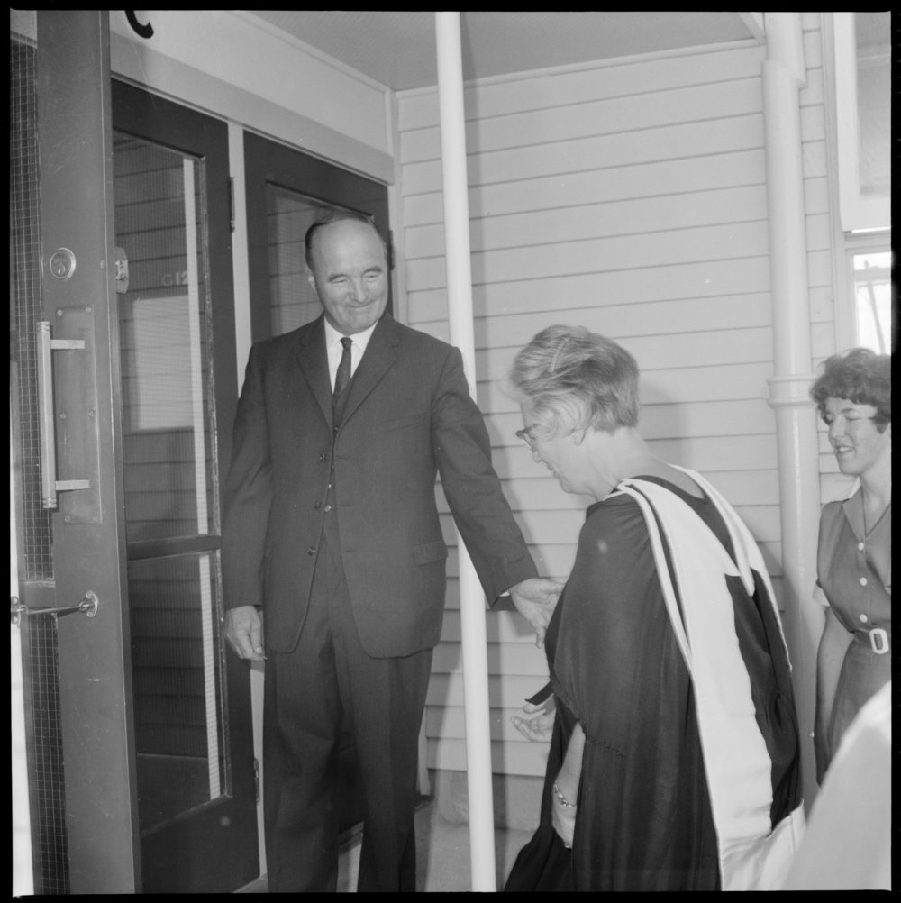 Mrs Drayton & Mr G Walsh. Opening of new block, Girls College (March 1963). Pae Korokī, accessed 15/04/2026, https://paekoroki.tauranga.govt.nz/nodes/view/50273