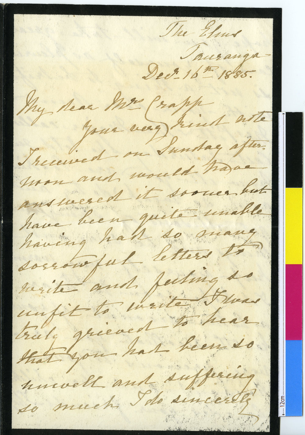 Partial letter from unknown to Elizabeth Crapp (16 Dec 1885). Pae Korokī, accessed 05/04/2026, https://paekoroki.tauranga.govt.nz/nodes/view/5028