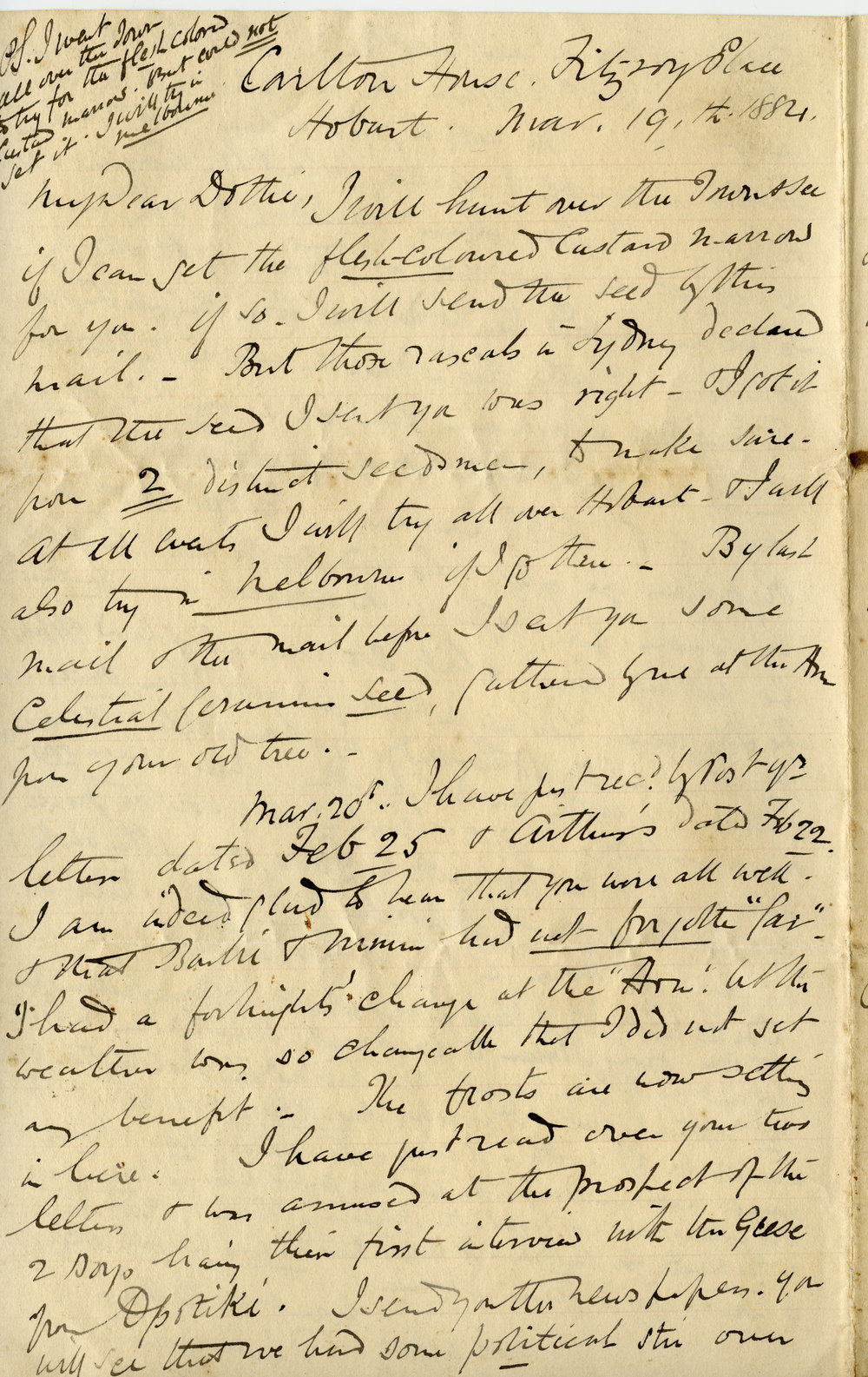 Gellibrand, Joseph Tice, 1826-1887, Letter from Joseph Tice Gellibrand to Elizabeth Crapp (19 Mar 1884). Pae Korokī, accessed 05/04/2026, https://paekoroki.tauranga.govt.nz/nodes/view/5035