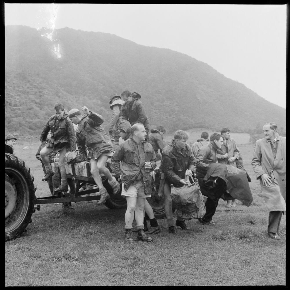 Aircraft wreckage party dismounting from tractor (July 1963). Pae Korokī, accessed 15/04/2026, https://paekoroki.tauranga.govt.nz/nodes/view/50597