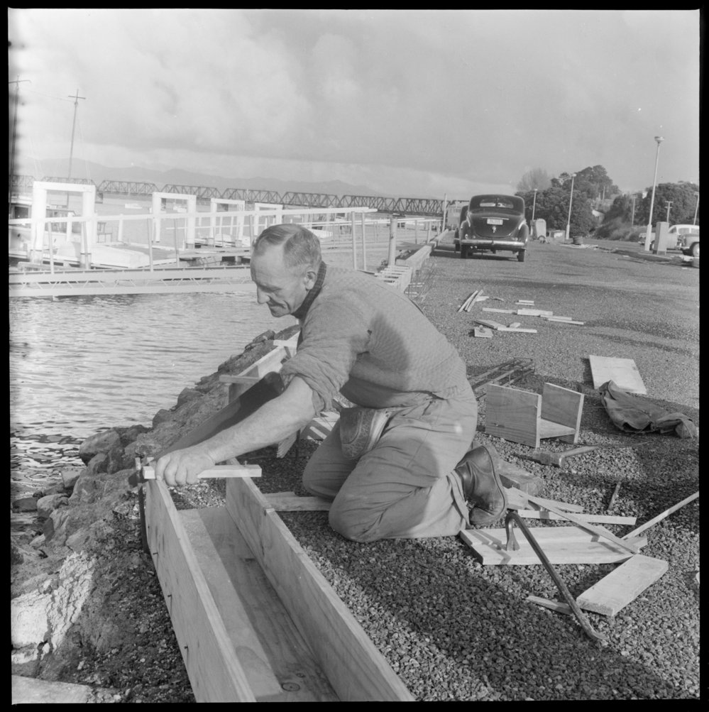 Work on Reclamation. Mr G Yates preparing boxing (July 1963). Pae Korokī, accessed 25/03/2026, https://paekoroki.tauranga.govt.nz/nodes/view/50606