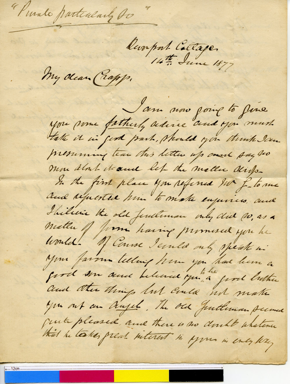 Letter from a friend of Joseph Tice Gellibrand to Arthur Algernon Crapp, 14 Jun 1877