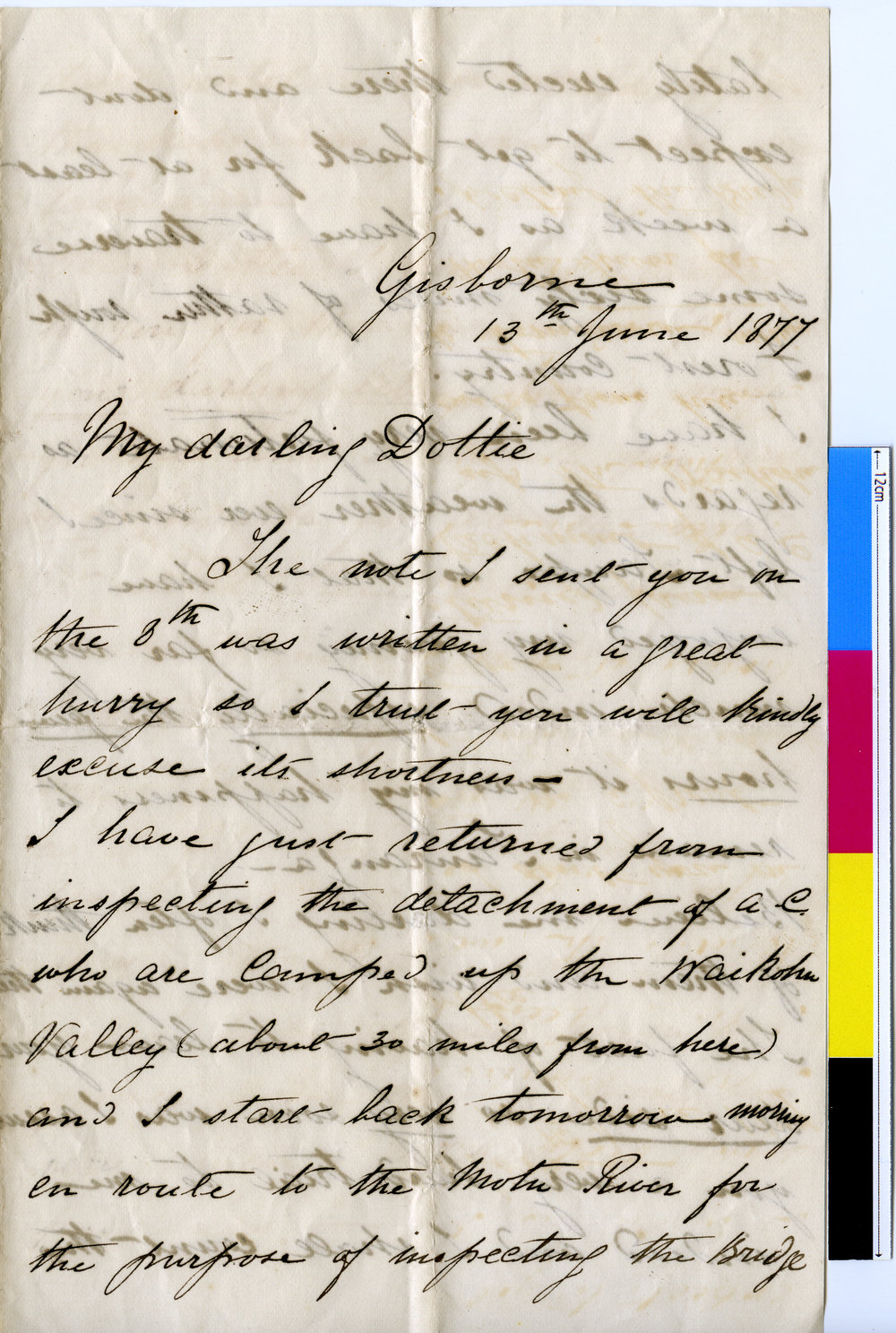 Crapp, Arthur Algernon, 1843-1928, Letter from Arthur Algernon Crapp, writing from Gisbourne, to Elizabeth Gellibrand, 13 Jun 1877 (13 June 1877). Pae Korokī, accessed 05/04/2026, https://paekoroki.tauranga.govt.nz/nodes/view/5062