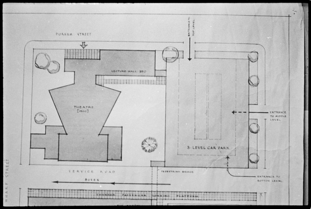 Date1961Reference NumberPhoto gcc-106DescriptionReproduction of a plan of Tauranga City Centre theatre and 3 level carpark.FormatNegativePhysical Description35mm black-and-white negative (2/3)Photographer/CreatorBay of Plenty Times